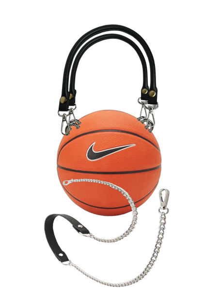 Voici le “Classic Nike Basket Bag” fait main à partir d’un véritable ballon de basket-ball accessoirisé par des anses noires et une bandoulière à chaîne. Ce sac unique s’ouvre par une fermeture éclair (doublure intégrée) offrant un bel espace à l'intérieur sac.