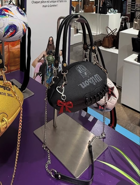 Voici le “American Black Bag” fait main à partir d’un véritable ballon de football américain accessoirisé par des anses noires et une bandoulière à chaîne. Ce sac unique s’ouvre par une fermeture éclair (doublure intégrée) offrant un bel espace à l'intérieur sac.