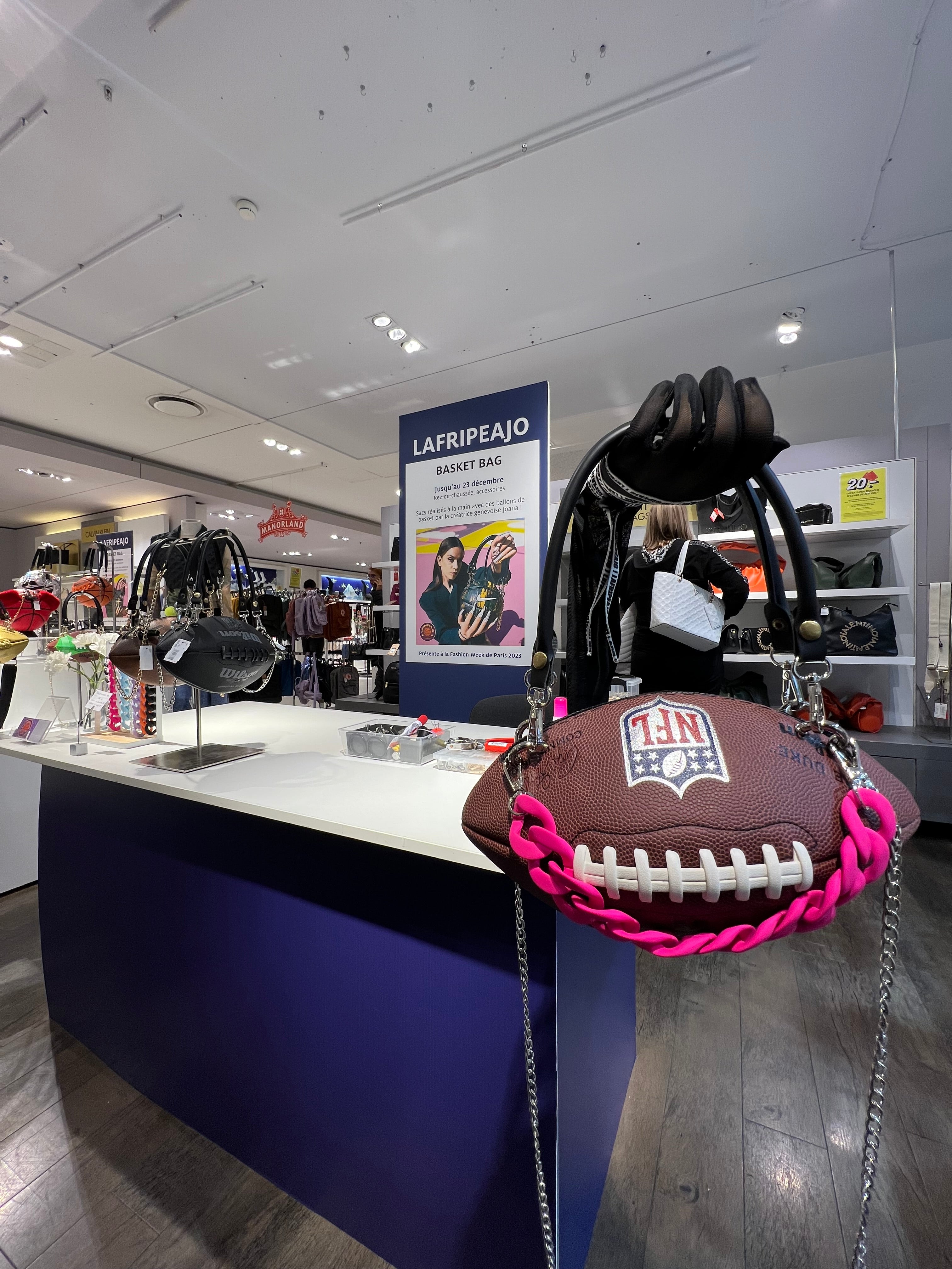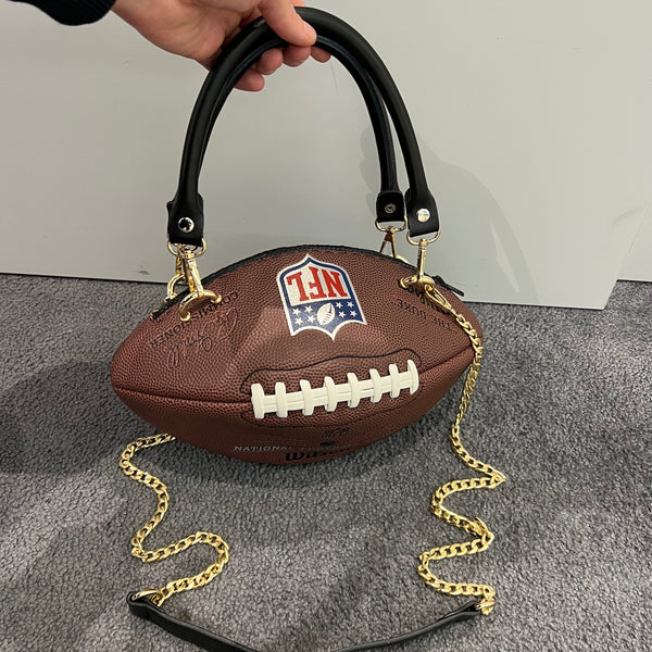 Voici le “American Classic Bag” fait main à partir d’un véritable ballon de football américain accessoirisé par des anses noires et une bandoulière à chaîne. Ce sac unique s’ouvre par une fermeture éclair (doublure intégrée) offrant un bel espace à l'intérieur sac.